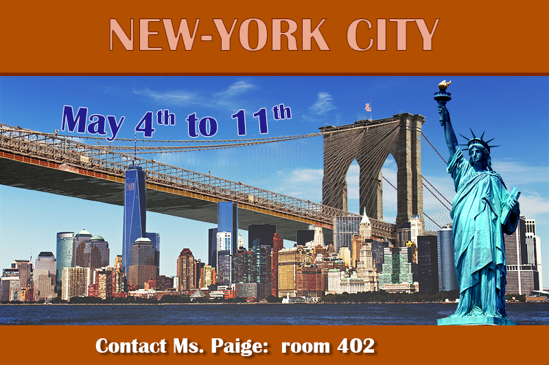 I need to insert the text NEW YORK CITY at the top and the date underneath. I will write "Contact Ms. Paige: room 402" at the bottom.